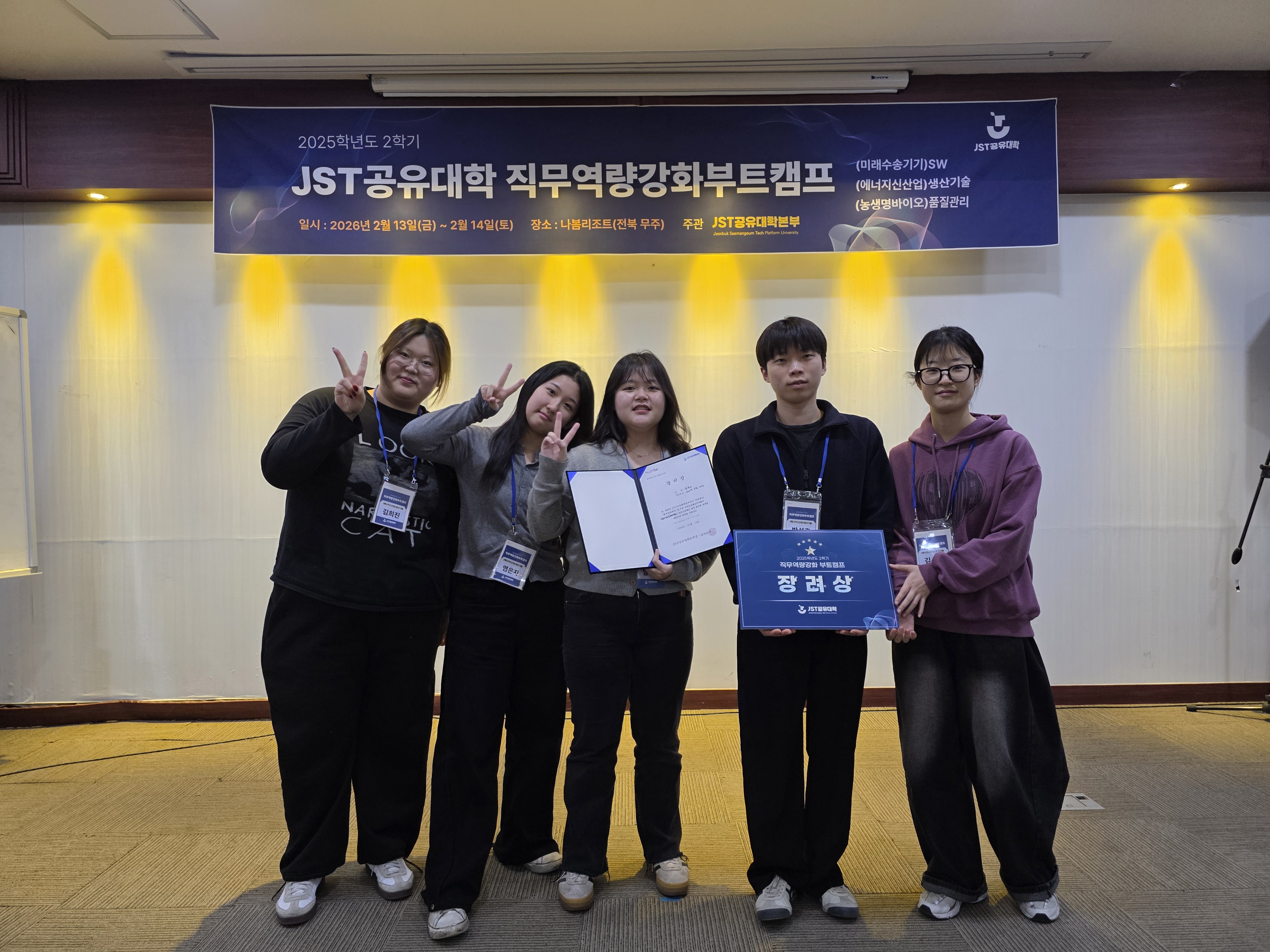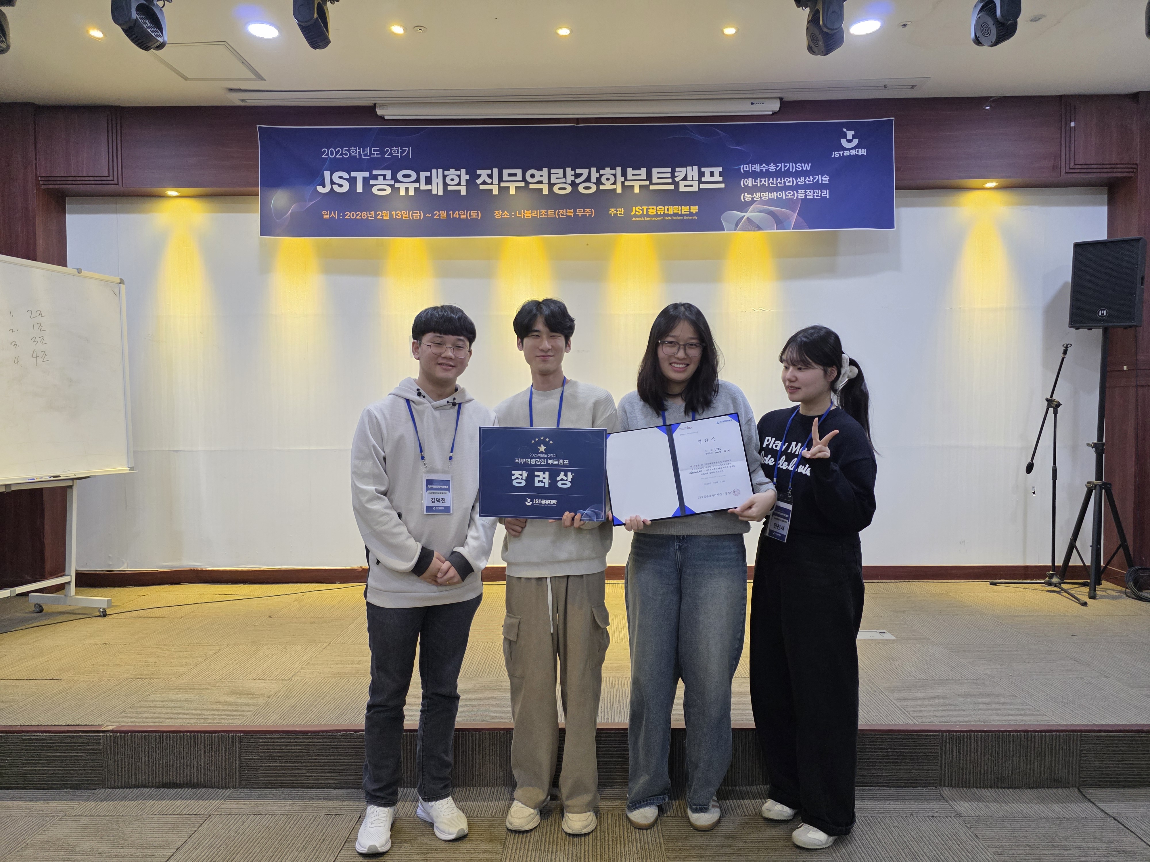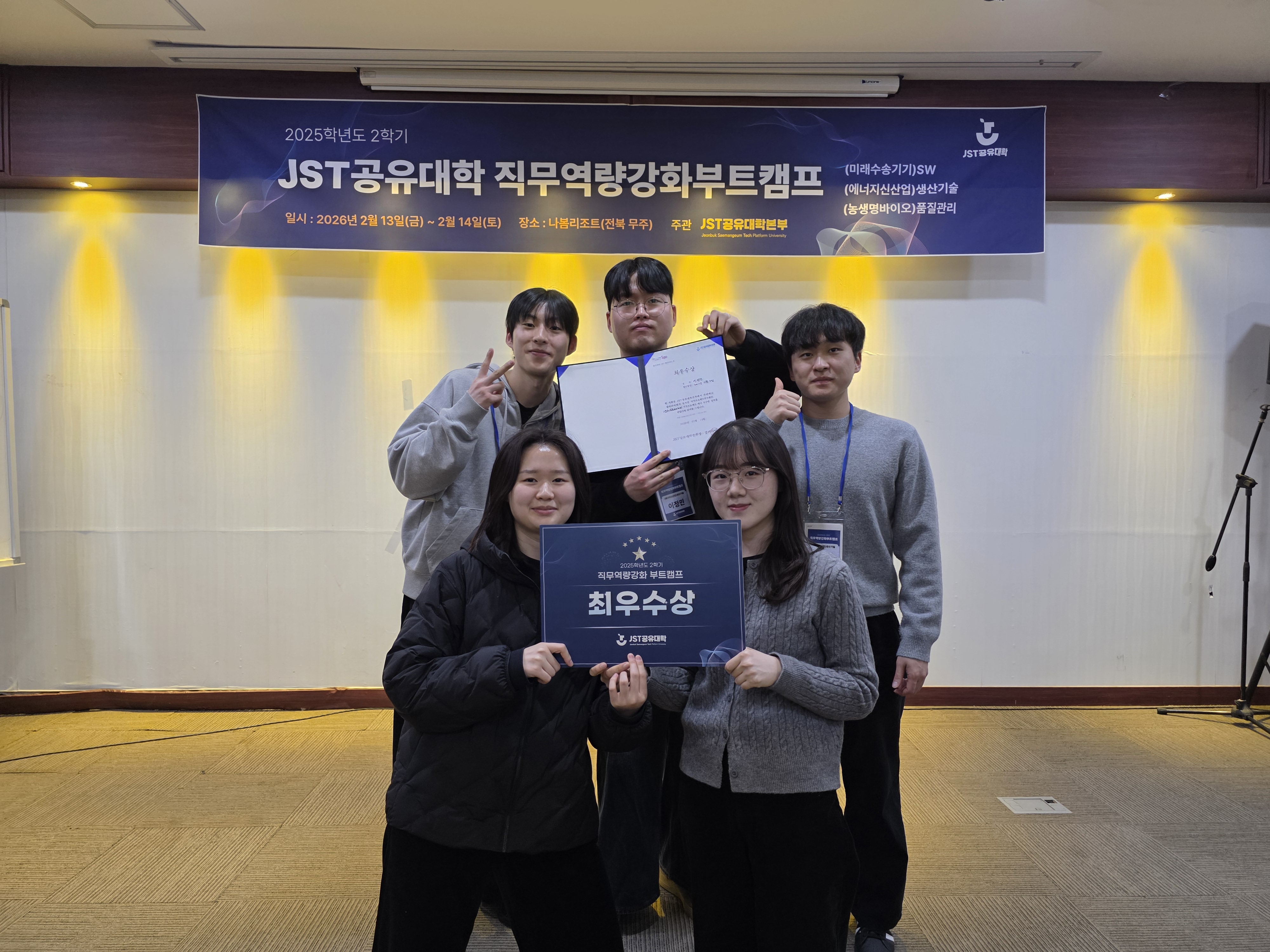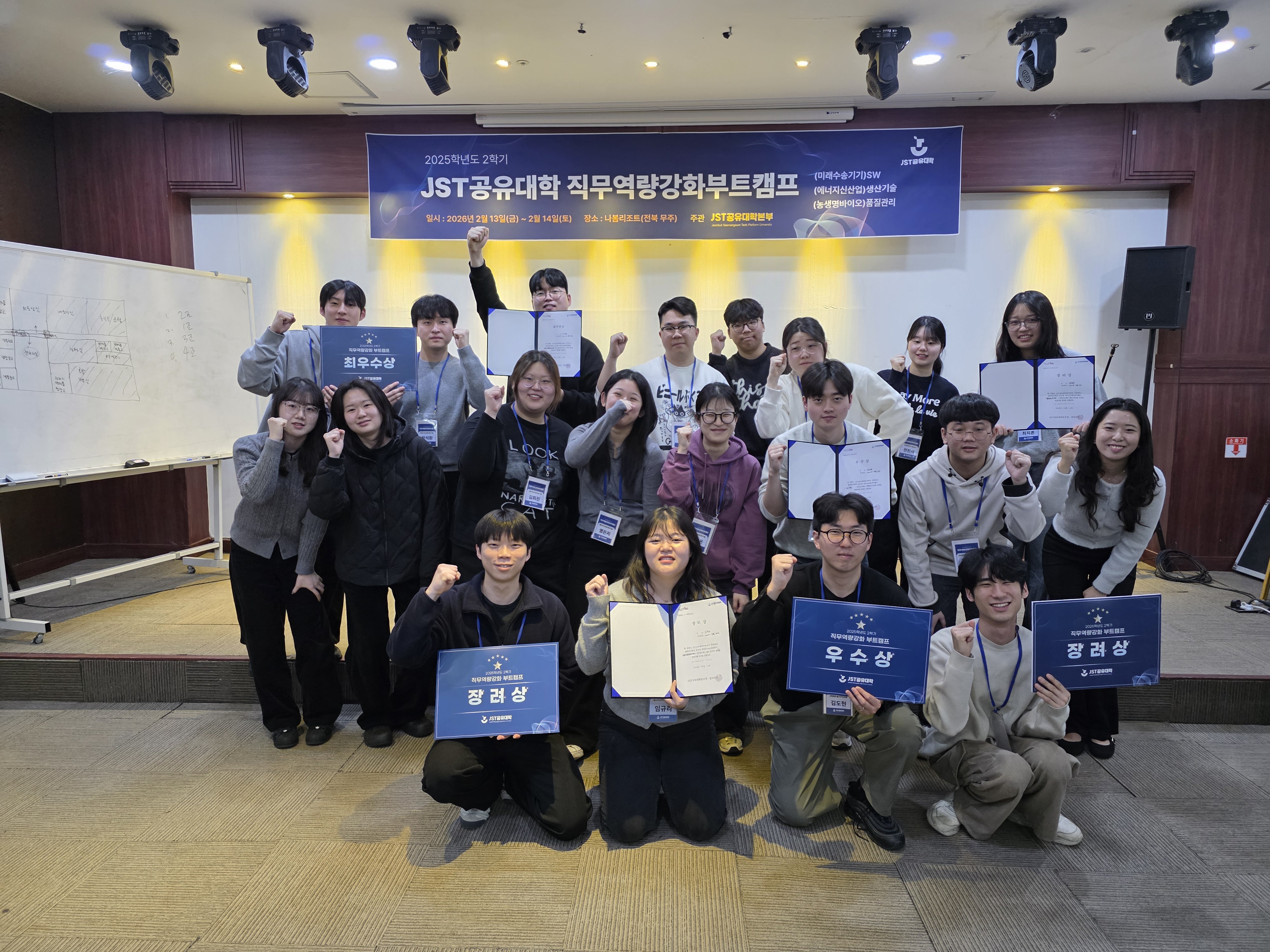 2025학년도 2학기「직무역량 강화 부트캠프」운영 작성자교혁팀3 작성일자2026-02-19 13:13:43 조회26 2025학년도 2학기「직무역량 강화 부트캠프」- 일시: 2026년 2월 13일(금) ~ 2월 14일(토)- 장소: 무주 나봄리조트- 내용 * 직무에 대한 기본과 실무 프로세스 경험을 통한 직무수행 역량 제고 * 직무별 과제 해결을 통한 문제해결 과정을 경험하고 직무수행 역량 개발의 필요성 제고 * 직무 전문가의 지도를 통한 직무별 프로젝트 수행으로 실무 역량 강화