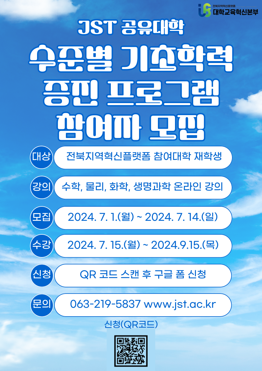 2024학년도 JST 공유대학 [제2차] 수준별 기초학력증진 프로그램