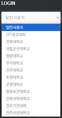 2. 본인 소속대학 선택 후, 아이디 패스워드 입력