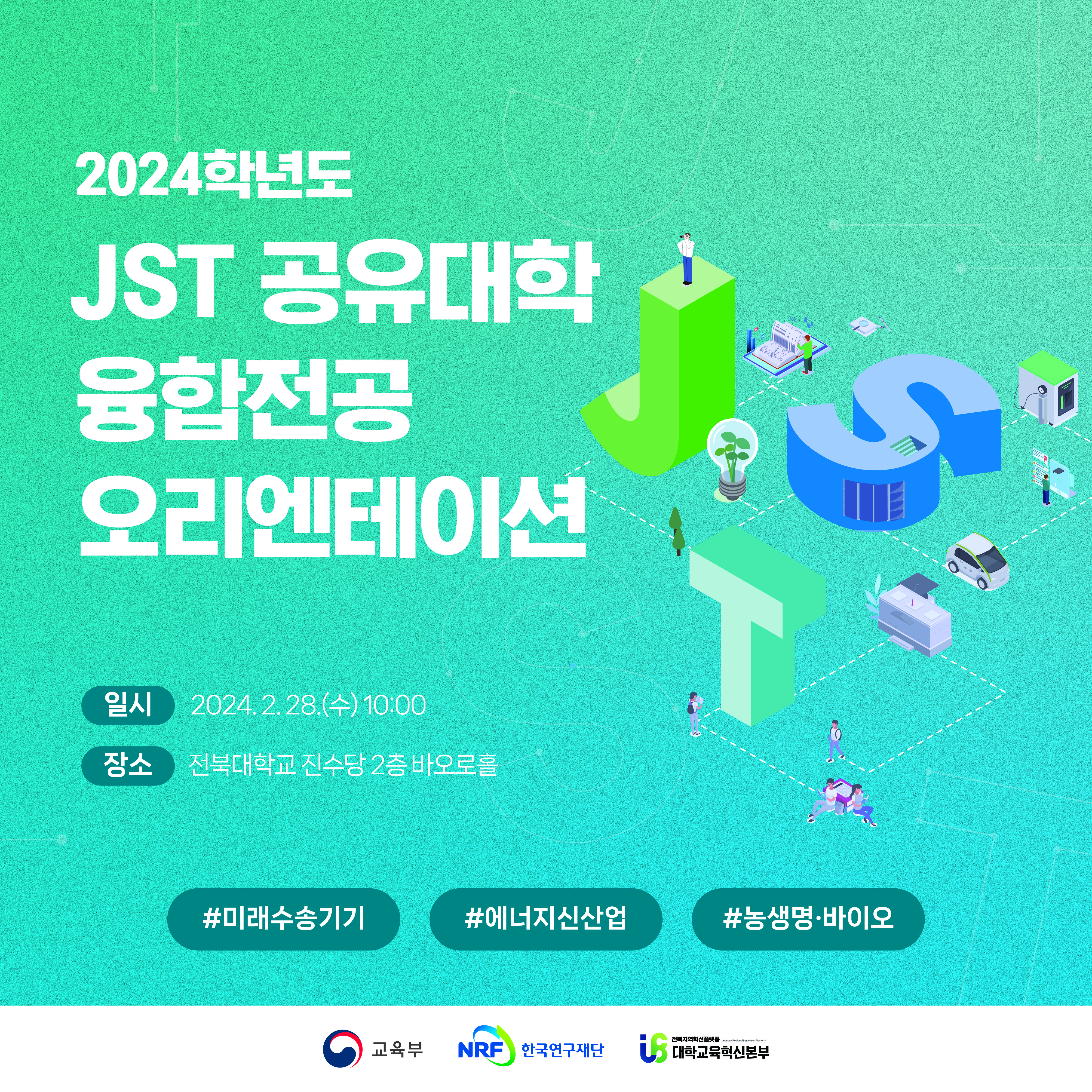 * 내용: JST 공유대학 참여학생 대상 전북지역혁신플랫폼 비전 및 현황 소개, 2024학년도 1학기 수강신청 방법 및 수업 수강 방법 안내 등
