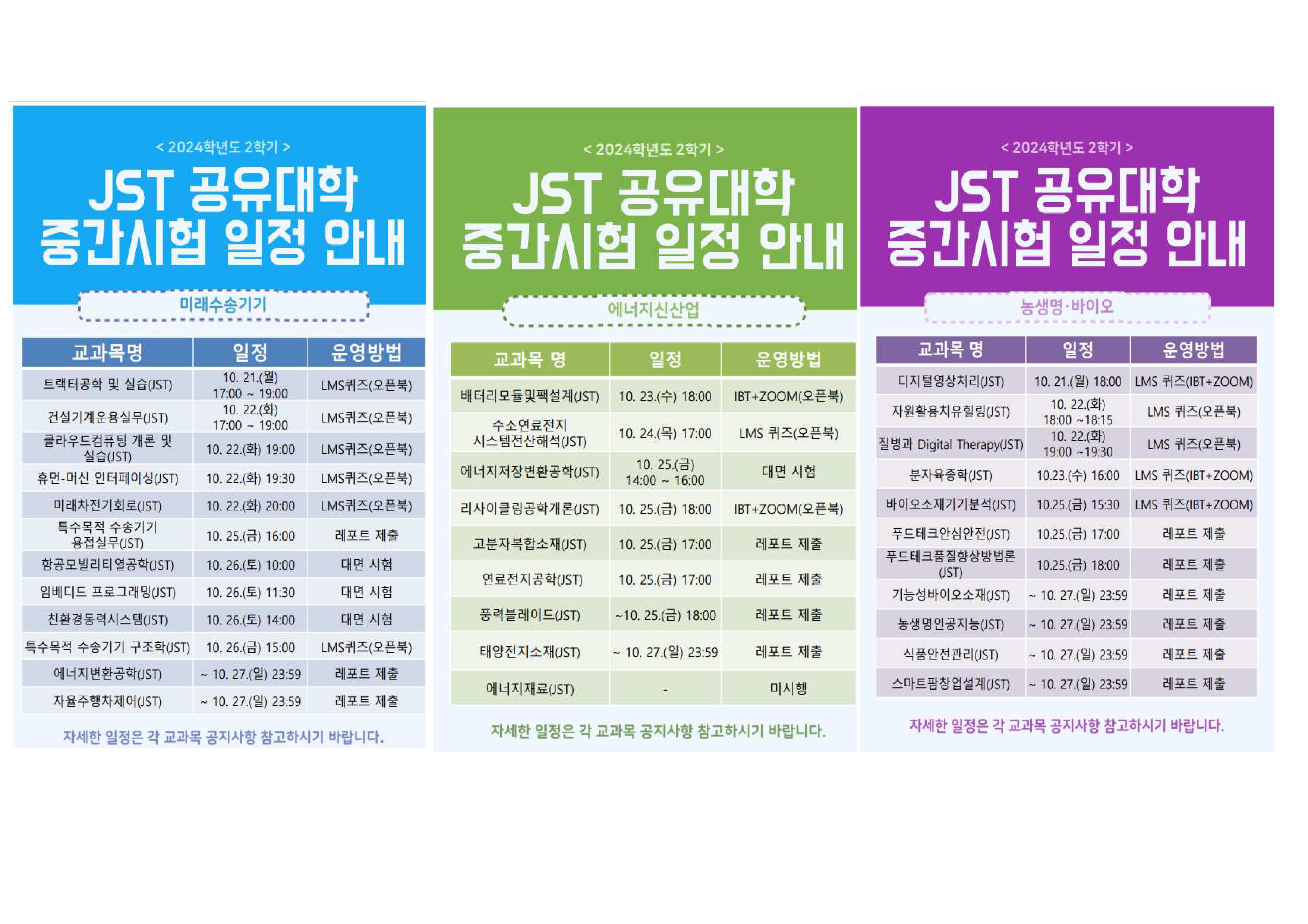2024학년도 2학기 중간시험 일정 및 방식 안내