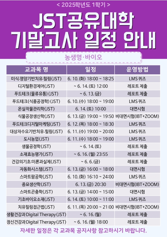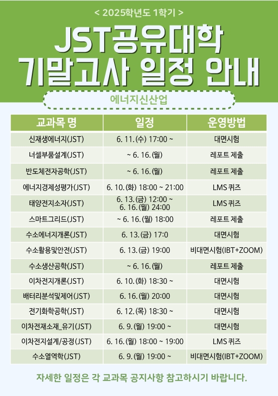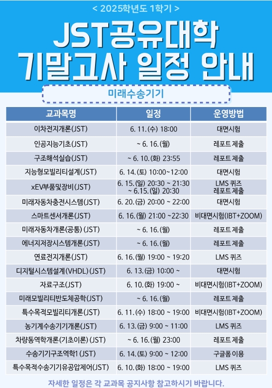 2025학년도 1학기 JST공유대학 기말고사 일정 안내