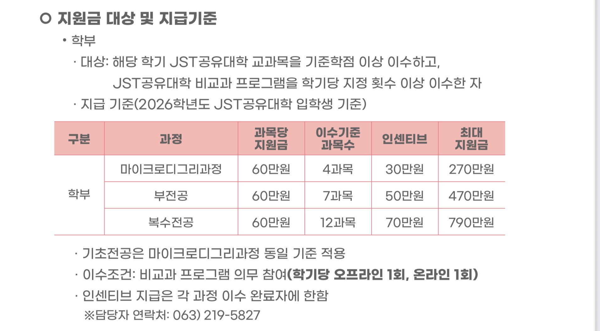3. 지원금 지급 대상 기준에 ‘JST 공유대학 교과목을 기준학점 이상 이수’라는 문구가 있으며,