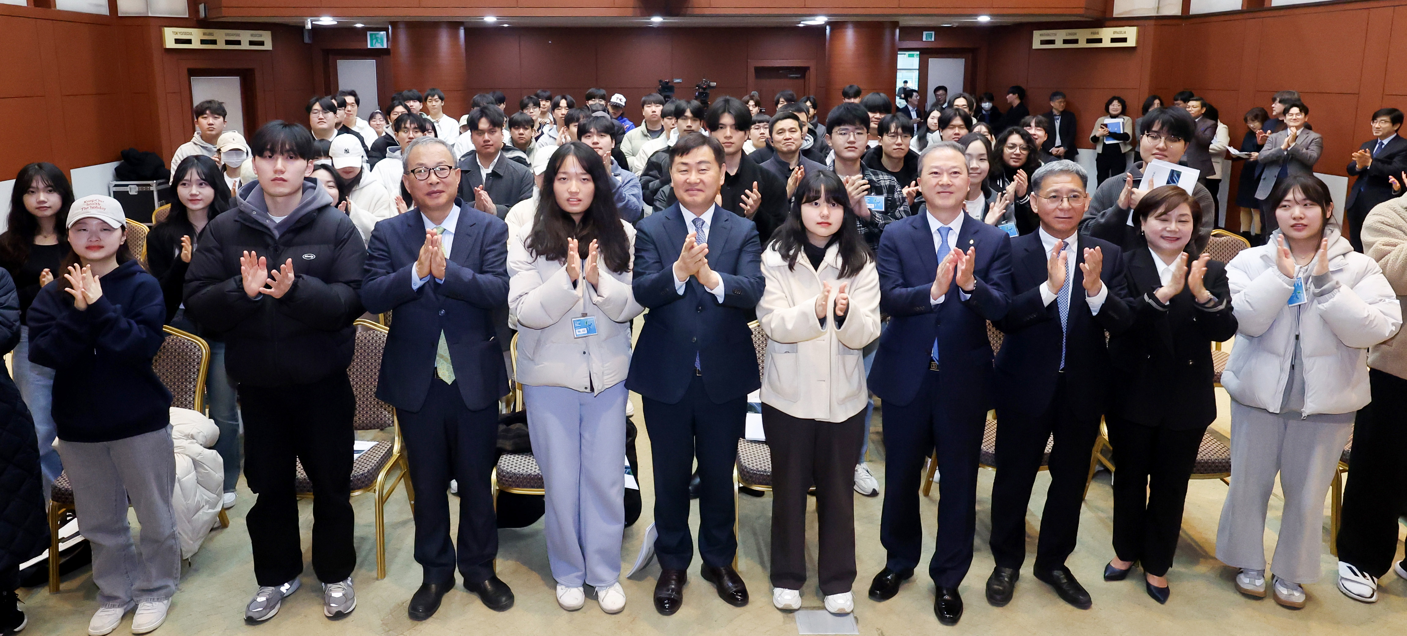 28일(수) 전북대 진수당에서 열린 ‘2024학년도 JST 공유대학 오리엔테이션’에 김관영 전북특별자치도지사, 양오봉 JST 공유대학 주관대학인 전북대총장, 운영 주체인 RIS 대학교육혁신본부 본부장 및 전북특별자치도의 3개 핵심분야인 미래수송기기-에너지신산업-농생명·바이오사업단장, 선발학생 200여명 등이 참석한 가운데 화이팅을 하며 기념촬영을 하고 있다. _전북특별자치도뉴스룸 中