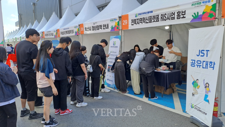RIS 홍보 프로그램 주요 내용은 ▲지자체-대학 협력기반 지역혁신 사업(RIS) 소개 ▲RIS 지원 프로그램 및 핵심 분야별 JST공유대학 설명 ▲RIS에너지신산업 인식 설문조사 등으로 구성해 적극적인 홍보활동을 펼쳤다. 베리타스알파中